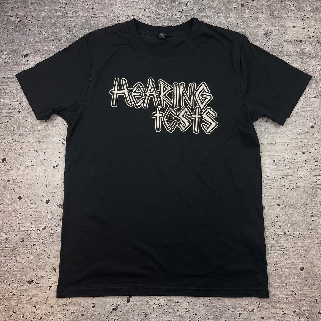 Printed by Vinosangre, designed by Hearing Tests Eco friendly, printed on Continental Earth Positive EP01 T Shirt Sizes M (10), L (4) left, XL (SOLD OUT). Limited amounts, please see above before ordering.
